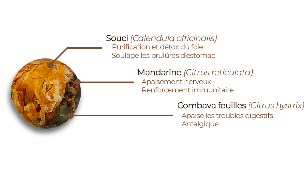 - Infusion : 10 à 12 minutes, dans une eau frémissante (90°C), le temps que la fleur de souci coule bien au fond, toute une allégorie...
